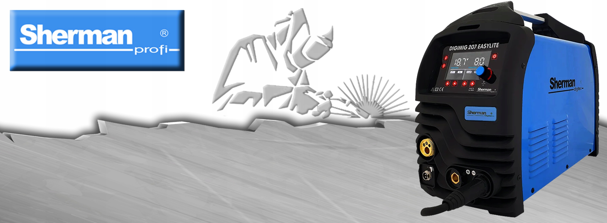 Migomat компании SHERMAN — это устройство широкого спектра применения, спроектированное как инверторный источник питания, обеспечивающий сварку защитной плавкой проволокой в газе MIG/MAGили FCAW, самозащитной проволокой (после смены полярности), сварка MMA покрытым электродом, а также TIG Lift метод