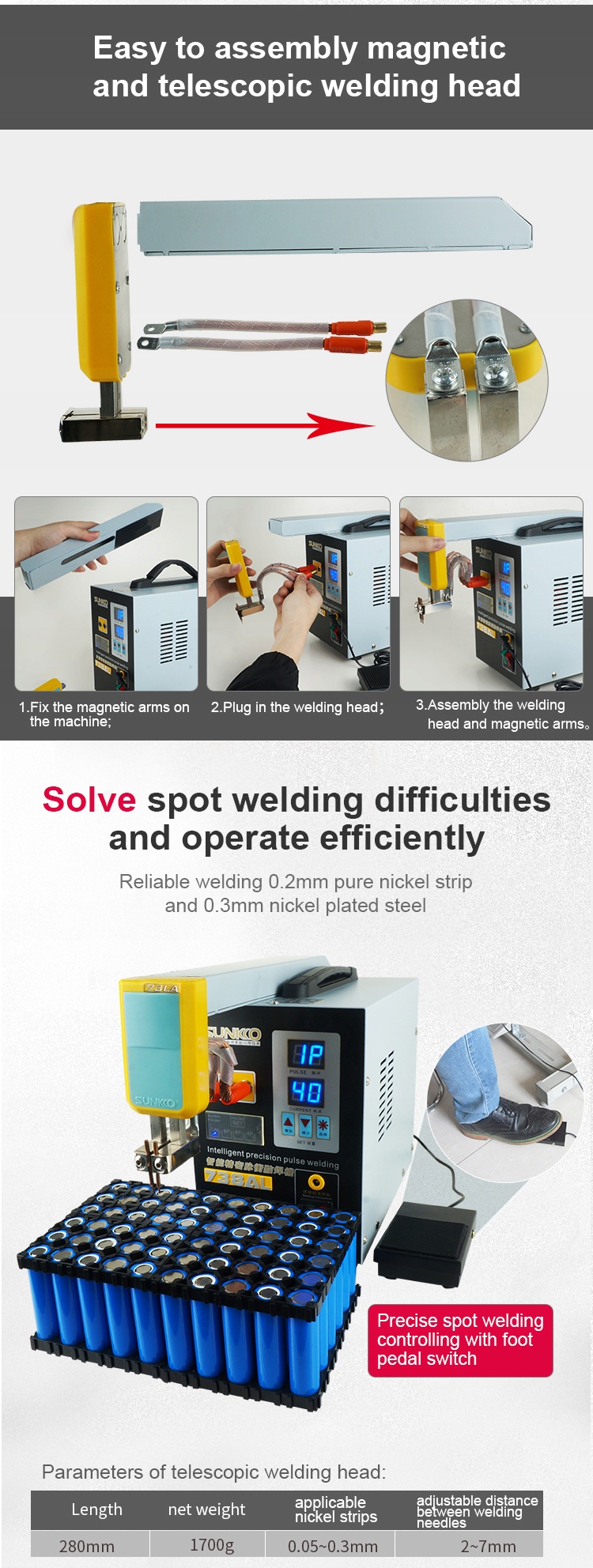 - СОВМЕСТИМОСТЬ аппарата для точечной сварки Sunkko 738AL, подходящего для сварки аккумуляторов 18650 и 14500. Этот аппарат для точечной сварки предназначен для сварки материалов из чистого никеля толщиной 0,2 мм или никелированных материалов толщиной 0,3 мм.