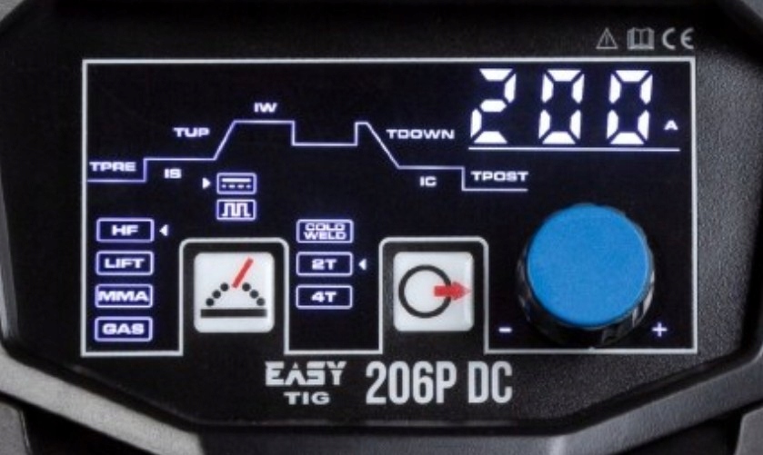 ⚙️ УПРАВЛЕНИЕ И ПРОСТОТА ИСПОЛЬЗОВАНИЯ EasyTIG 206P DC отличается простой и интуитивно понятной функциональной панелью, позволяющей точно контролировать все ключевые параметры сварки методами TIG и MMA. Устройство позволяет легко регулировать: время нарастания/спада тока, базовый ток, частоту и ширину импульса, а также предлагает выбор режима работы 2T/4T.