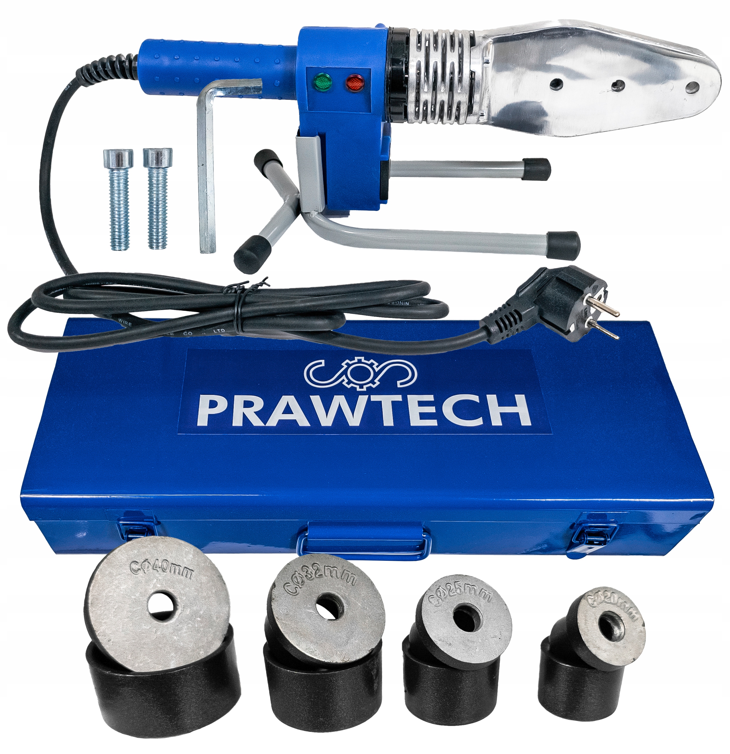 ЗВАРЮВАЛЬНИЙ АПАРАТ З ПІДСТАВКОЮ ДЛЯ PP-R ТРУБ КОМПЛЕКТ KC63RI 900W 20-40mm Prawtech