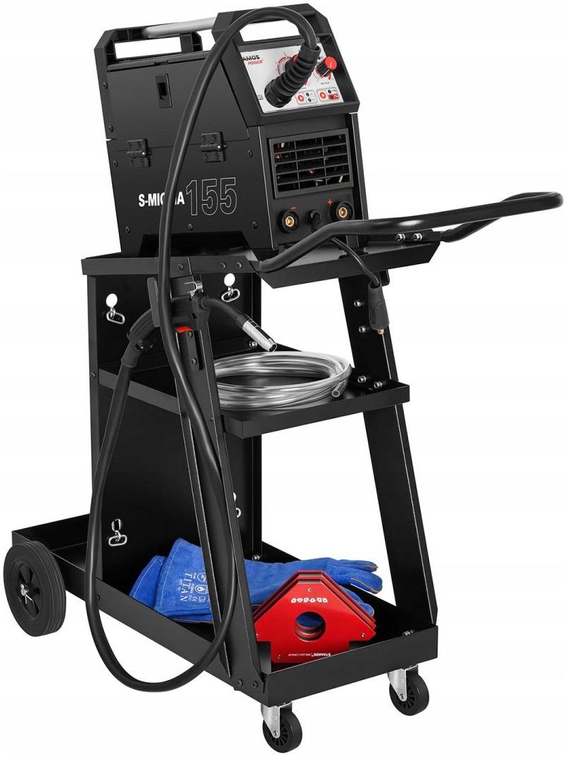 Надежная конструкция изготовлена из Прочная сталь, окрашенная в черный цвет, имеет общую грузоподъемность до 75 кг, что делает сварочную тележку подходящей даже для тяжелых сварочных аппаратов MIG/MAG и TIG. Сзади имеется место для газового баллона, который легко закрепить с помощью 2 прочных цепей.