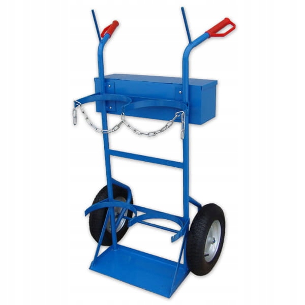 Тележка для перевозки газовых баллонов. Прочная стальная конструкция, защита цилиндра. от падения с помощью цепи. Ящик для инструментов и аксессуаров.