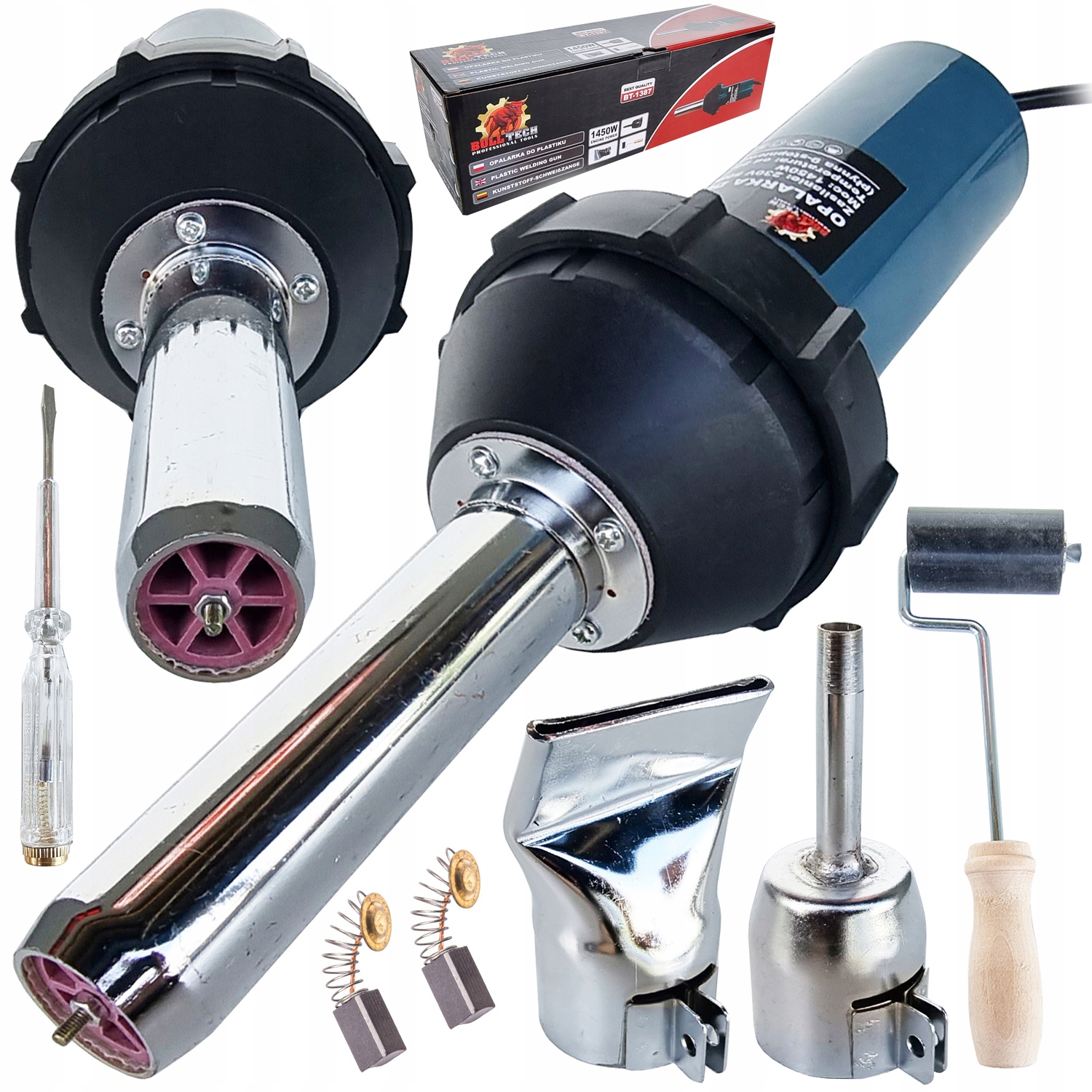 Аппарат для сварки пластика польской марки BULL-TECH с индексом bt1387. Универсальный инструмент для пайки пластиковых элементов и тентов. Сварочный аппарат имеет функцию плавного регулирования температуры подаваемого воздуха. Очень прочный и долговечный нагреватель, сердечник из керамики.