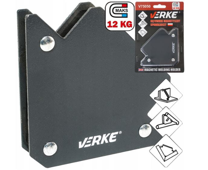 Магнитный угол, изготовленный из стального листа и сильных ферритовых магнитов. Это обеспечивает точную комбинацию материалов под следующими углами: 45 °, 90 ° и 135 °. Емкость магнита ок. 12 кг. Порошок -опечаленная поверхность корпуса магнита. Разработано для временной комбинации элементов металла при сварке, бурении, лакистке, действиях, требующих использования обеих рук. Использование магнитного угла обеспечивает бесплатную работу как с помощью рук, так и предварительного сбора соединения, металлических элементов без помощи дополнительного человека.