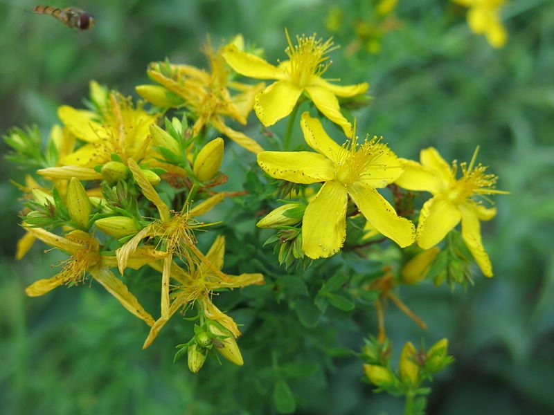 Зверобой — медоносное растение, производит много пыльцы. Его название происходит от масляных резервуаров, расположенных в листьях в виде прозрачных точек. Растение распространено на всех континентах, многолетнее, вырастает примерно до 60 см, стебель прямой, прямостоячий, листья супротивные, эллиптические. Золотисто-желтые цветки с лимонным ароматом собраны в зонтики и при раздавливании выделяют красный сок. Растение цветет с лета до начала осени, его называют травой Святого Иоанна. Это связано со временем цветения - 24 июня.