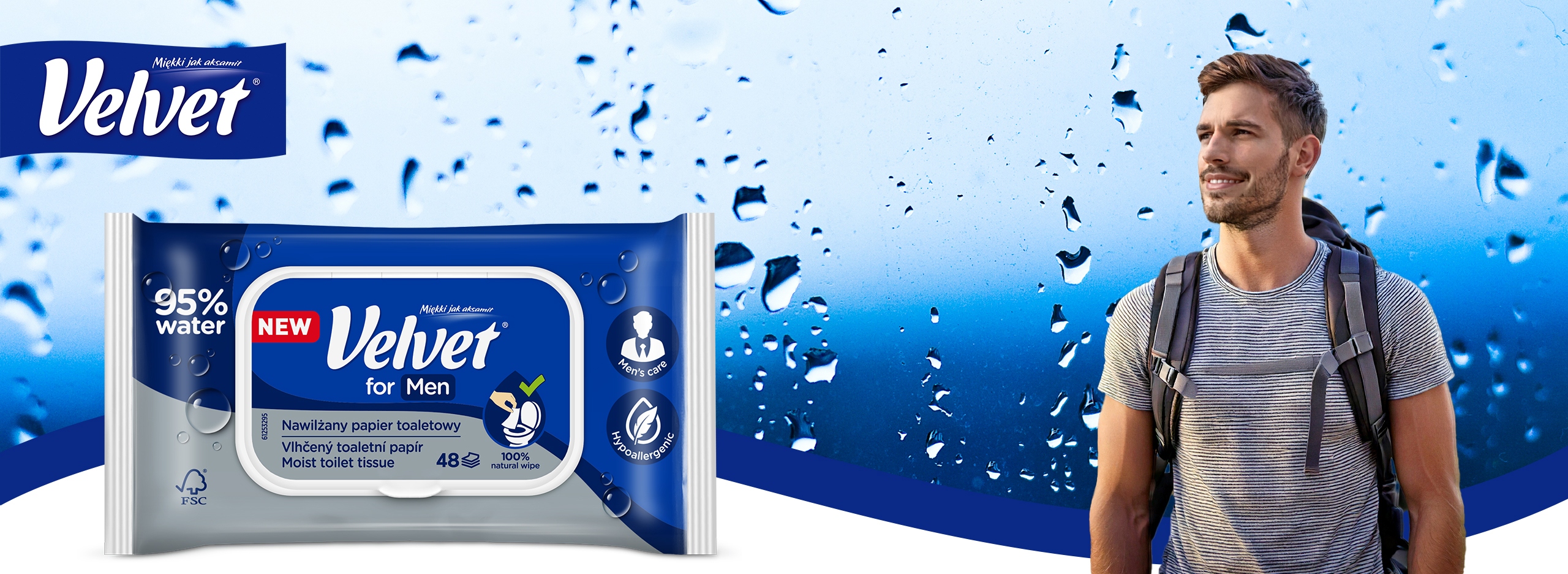 Достигнуть к Современному уходу 2IN1 , созданная для интимной и туалетной гигиены мужчин. Деликатный без запаха и гипоаллергенный Косметическая формула идеально обновит и очистит интимную зону мужчин также после мочеиспускания! Откройте для себя new Doamet Hygiene Standard с увлажненной туалетной бумагой Velvet , что является идеальным дополнением к стандартной туалетной бумаге в рулоне.
