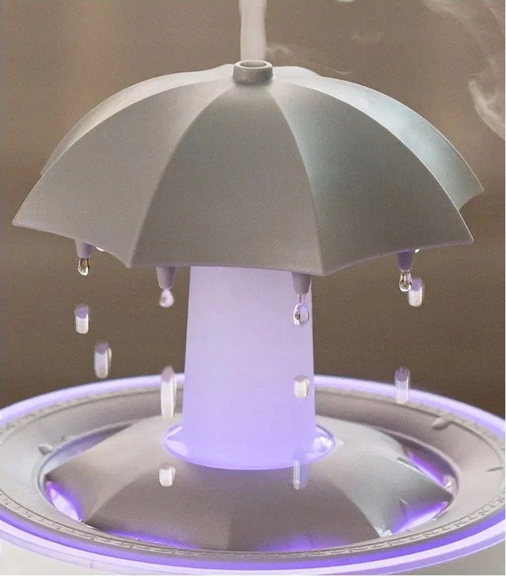 Этот уникальный увлажнитель, вдохновленный дождливой погодой, создает очаровательный эффект падающих капель, которые мягко циркулируют, не разбрызгивая воду. Он издает успокаивающий шум, напоминающий легкий дождь, а его легкое вращение в сочетании с мягким светодиодным светом обеспечивает глубокую релаксацию - идеально подходит для чтения, медитации или спокойного сна.