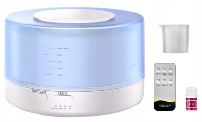 - белый ультразвуковой увлажнитель воздуха, пульт дистанционного управления с аккумулятором,
