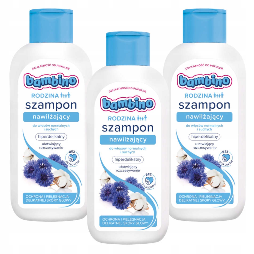 Увлажняющий шампунь Bambino FAMILY создан с максимальной чувствительностью для заботы о волосах и коже головы всей семьи! Обогащенная ценными ингредиентами и экстрактами природного происхождения, формула питает волосы и предотвращает раздражение, увлажняет кожу головы и укрепляет волосы, придавая им блеск. Шампунь не содержит силиконов, облегчает расчесывание и не щиплет глаза. Его можно использовать в ежедневном уходе за волосами с 3-летнего возраста. Продукт изобретен и изготовлен в Польше.