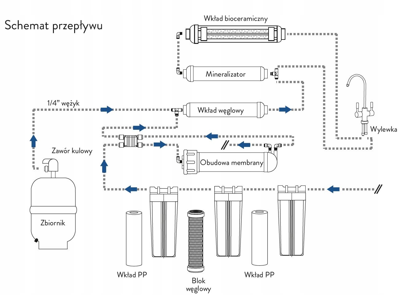 осмотические мембраны являются основным элементом любой системы обратного осмоса. Сделанные, среди прочего из полиамида, мембраны отдельные примеси, содержащиеся в воде из чистой воды. Первоначальные фильтры в системах обратного осмоса очищают воду перед мембраной, а конечные фильтры, установленные после мембраны, улучшают вкус и запах воды, а также обогащают ее минералами. Мембраны останавливаются до 99% органических и неорганических загрязняющих веществ, тяжелых металлов и других элементов мин. 0,0001 мкм.