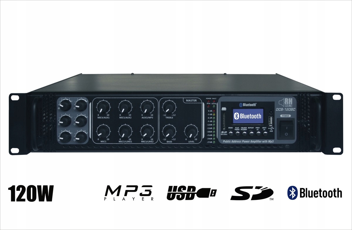 Universal Radio Amplifier, который используется в качестве снабжения звуковой системы во всех общественных учреждениях, отелях, ресторанах, офисах, коммерческих и священных. Современный звуковой блок с MP3 -плеер. Высокая выходная мощность и выход на 6 независимых зон динамика позволяют поставку систем, звучащих крупных поверхностей. Входные данные: 3 X MIC (Mic -Priority), 3 X Aux, встроенный -ин -в MP3 -плеер -данные из внешней USB -памяти или SD -карты. Bluetooth -соединение для устройств, оснащенных профилем A2DP, например, мобильный телефон. Уровень выходного сигнала главного объема, коррекция соединения низких и высоких тонов. Все с пультом дистанционного управления. Усилитель обладает возможностью включить блок питания группы Phantom +9V на каналах микрофона от MIC-1 на MIC-3, что позволяет использовать емкостные микрофоны без дополнительных аксессуаров (одновременное использование динамических микрофонов на каналах с мощностью фантома, только с асимметричным подключением-скоростным кабелем).