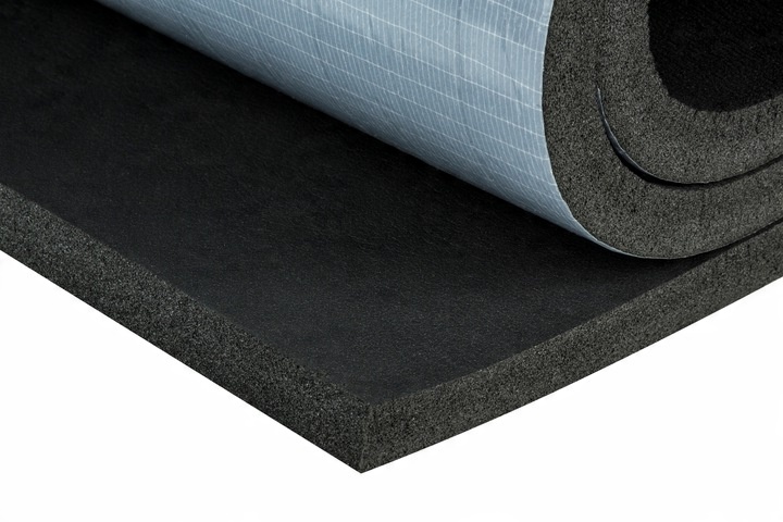Резиновый изоляционный вспененный материал с закрытопористой структурой со слоем прочного клея, обладает высокими акустическими и изоляционными свойствами .