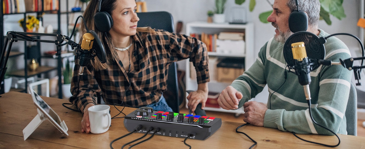 🎼Цифровой микшер поддерживает 16 персонализированных звуковых эффектов. Эти функции делают прямые трансляции или подкасты более интересными и отвечают большему количеству ваших потребностей в записи прямых трансляций, чего достаточно для удовлетворения потребностей начинающих подкастеров.