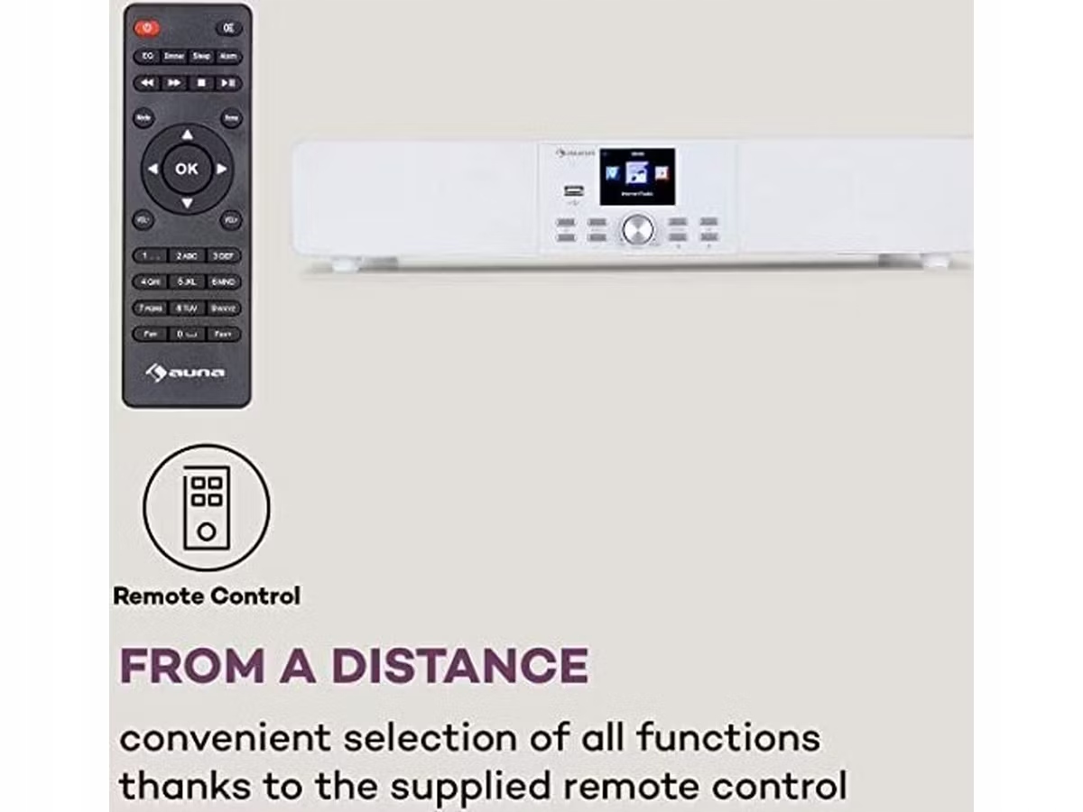 Интернет-радио можно управлять с помощью простой в использовании клавиатуры на самом устройстве или, не вставая с дивана, с помощью прилагаемого пульта дистанционного управления.
