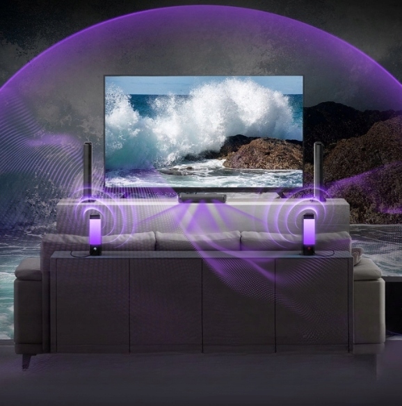 ✅ Сочетание подсветки и звука RGB: Звуковая панель Apollo S90 для Smart TV сочетает в себе объемный звук и подсветку гармония с миллионами цветов и 6 режимами RGB. Освещение имитирует звук в реальном времени, обеспечивая насыщенное аудиовизуальное впечатление во время каждого вечера просмотра кино.