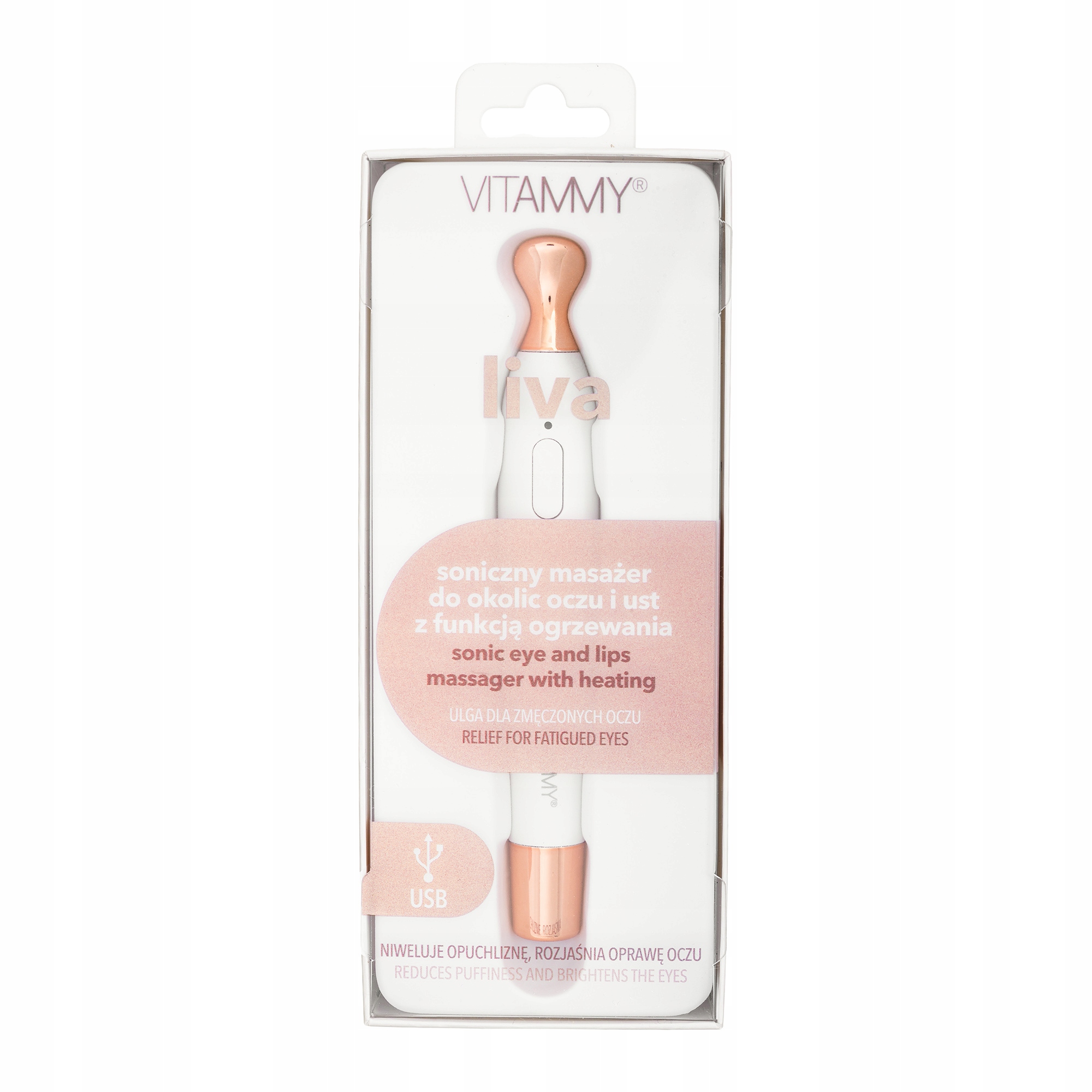В современном мире мы ежедневно сталкиваемся с проблемами, связанными с недостатком сна, стрессом и долгими часами, проведенными перед экранами, поэтому уход за областью глаз и рта становится так важен. Из-за своей нежности эта область чрезвычайно подвержена усталости, из-за чего она быстро теряет эластичность и блеск. В ответ на эти потребности мы представляем аппарат VITAMMY Liva – звуковой массажер с функцией нагрева, специально разработанный для нужд области глаз и рта.