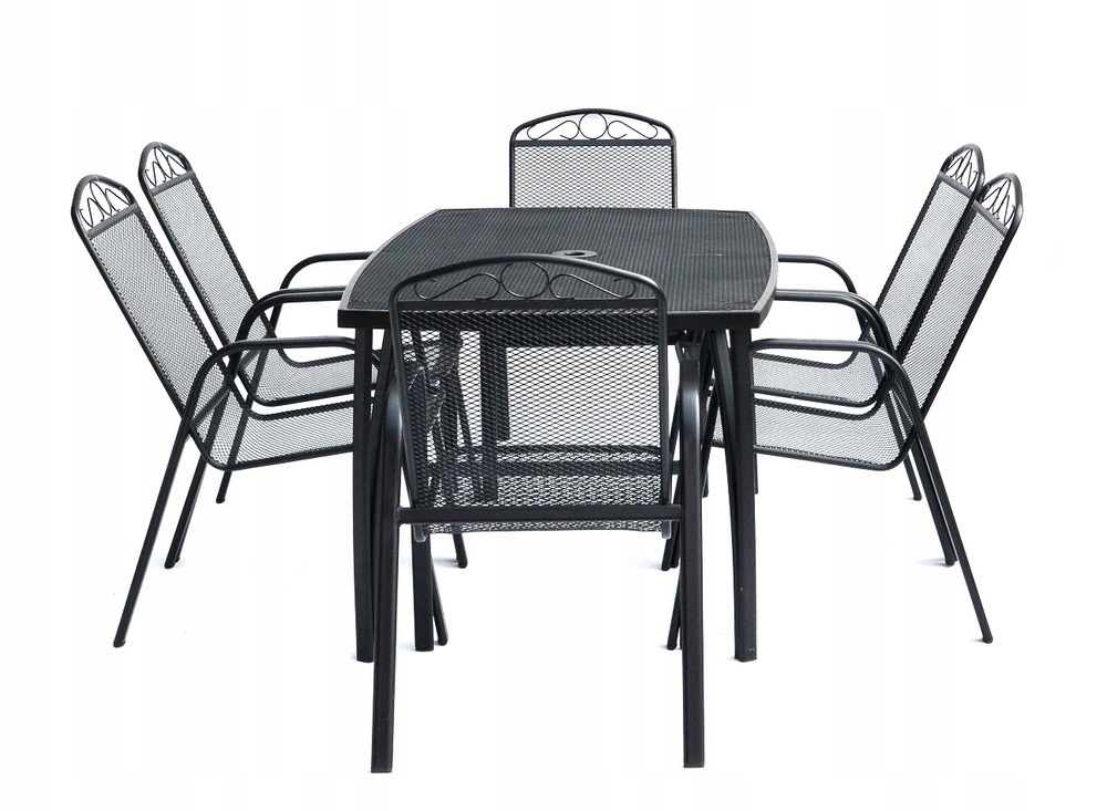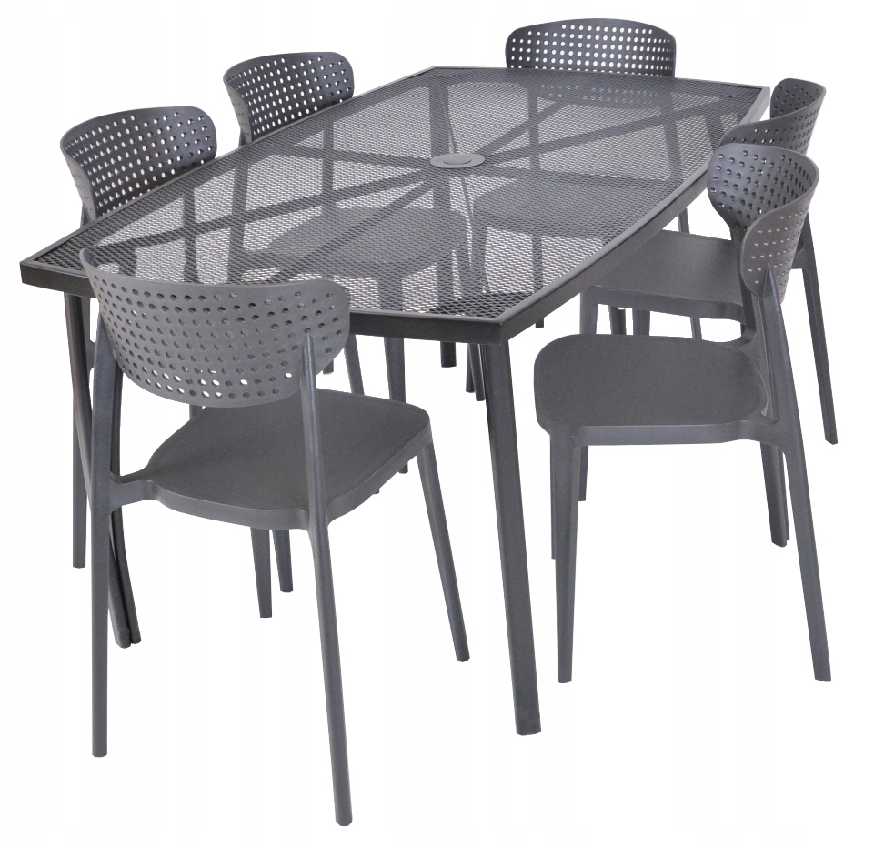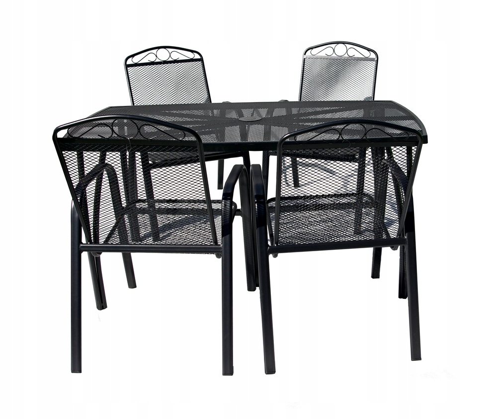 Металлический садовый стол с проволочной внешней пластиной с прямоугольной формой. Он отлично сочетается с всеми видами металлической садовой мебели. О нем легко ухаживать и вымыто. В середине стола есть отверстие для зонтика. Стол изготовлен из металла. Это металлическая решетка, в которой лист вырезан и растягивается во время производства, создавая типичные стержни. Благодаря этому материалу это прочный и практичный продукт.