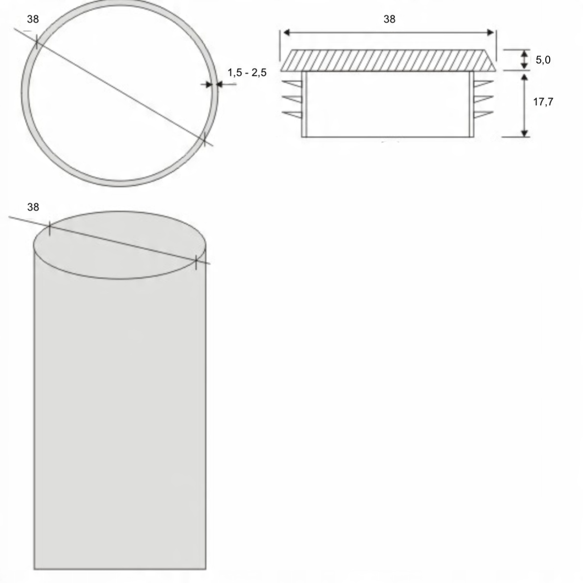 ВНУТРЕННЯЯ ЗАГЛУШКА ДЛЯ ТРУБЫ FI38 ЧЕРНАЯ 5 ШТ.