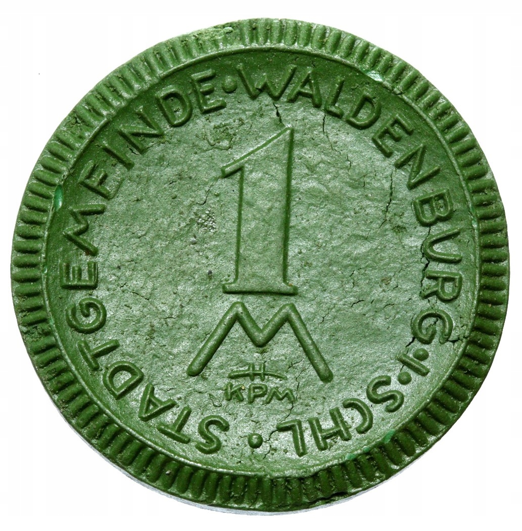 + Waldenburg - Wałbrzych - 1 Marka 1921 KPM - ZIELONA CERAMIKA