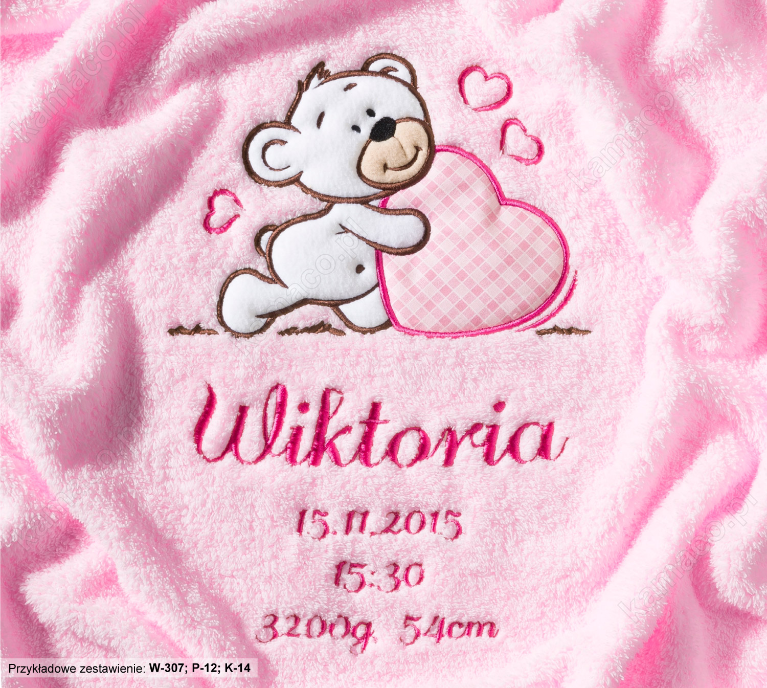 - W-507 вишивка Плюшевий ведмедик з надписом, ковдра Рожевий;