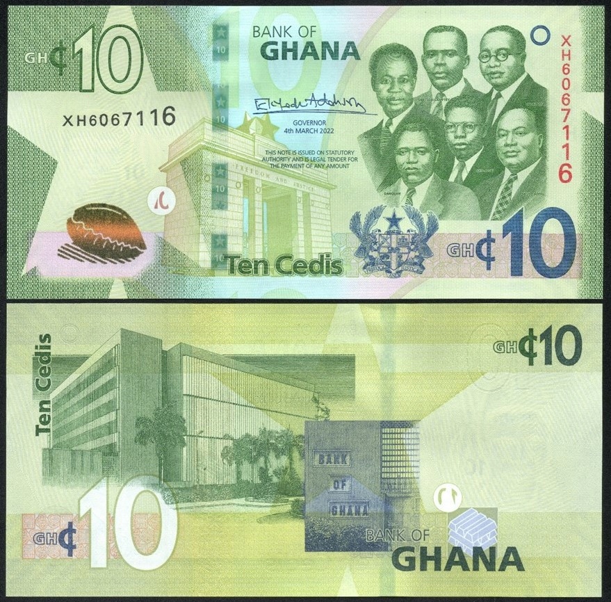 $ GHANA 10 CEDIS P-47B UNC 2022