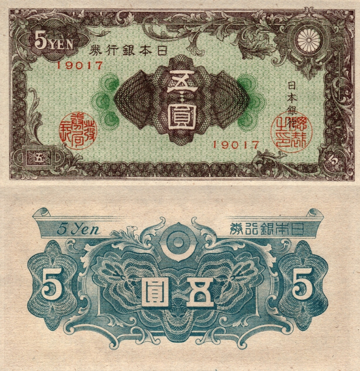 # JAPONIA - 5 JENÓW - 1946 - P-86 - UNC