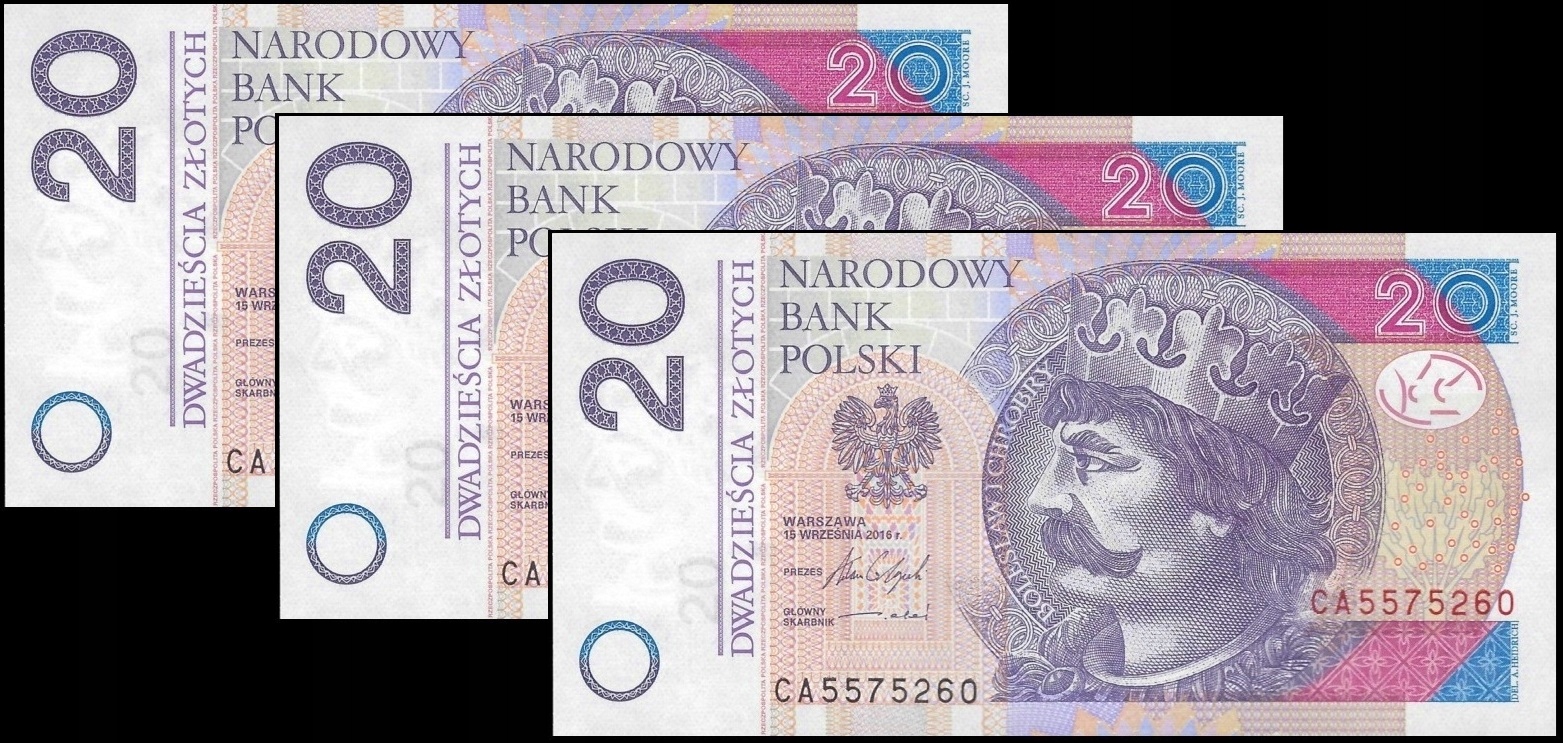 * Польський набір 3 x 20 Zlotys 2016 P-184 ** UNC ** Серія CA Наступні номери