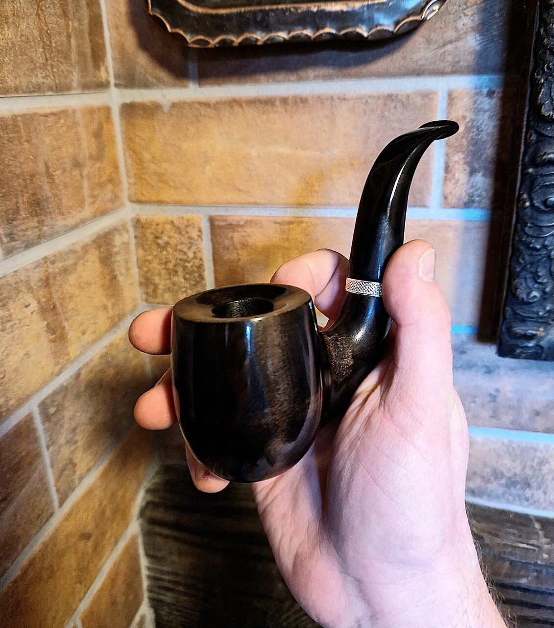 Елегантна люлька OOM Paul у формі ручної роботи зі старої грушевої деревини. Люлька масивна і досить важка з характерним вигнутим горлом і ідеально лежить в руці. Акриловий мундштук, щільно прилягає до горловини, має фільтр діаметром 9 мм, а саму горловину прикрашає красиве посріблене кільце. Цікава пропозиція для любителів люльок такої форми. Все упаковано в оригінальну коробку з логотипом нашої студії.
