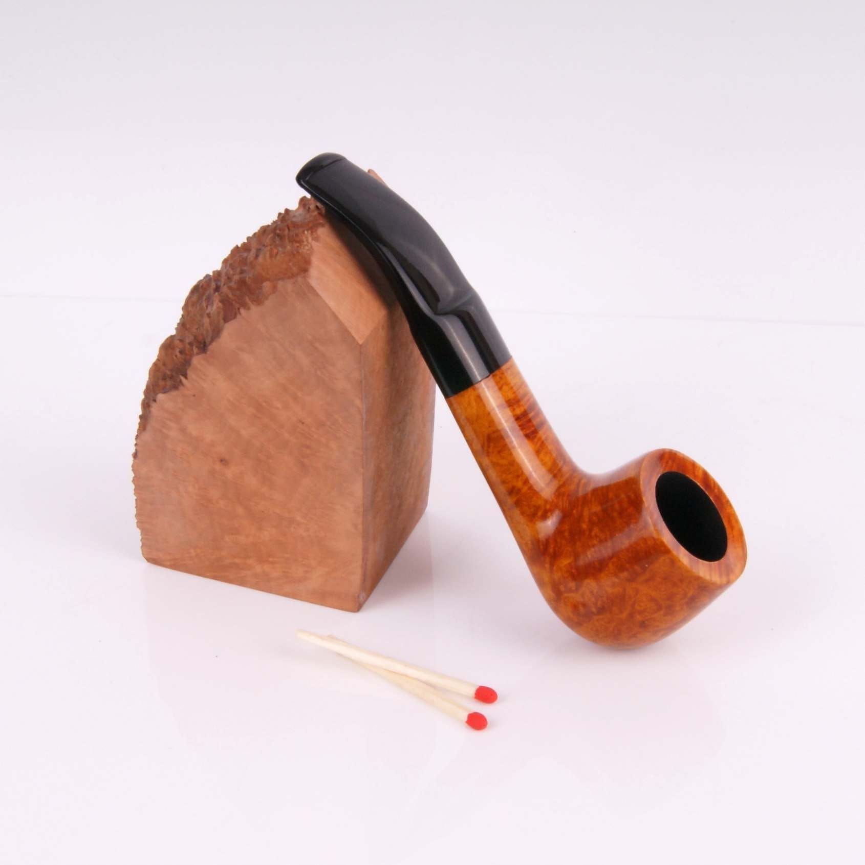 Маленька курильна люлька, виготовлена вручну з італійського шипшини в нашій майстерні поблизу Перемишля. Класична форма, овальна горловина і компактні розміри - його характерні риси. Трубка має прекарбонизированний под стандартної місткості і короткий мундштук з широким накусом і місцем для конденсатора, виготовлений з міцного ебоніту. Трубка упакована в чохол і оригінальну коробку нашого ательє. Шипшина - Італія / Лігурія, шипшина - Міммо, сорт - Екстра.