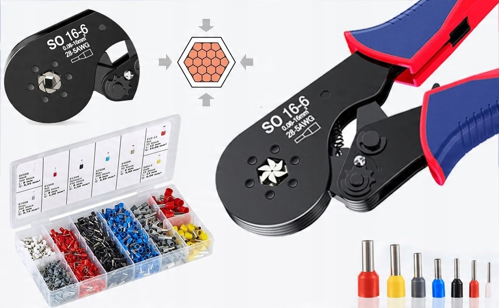 【Точна конструкція】 затискач для більш жорсткого профілю шестикутного затискача, затискач храпочка в повному циклі забезпечує повне затягування з'єднань для ізольованих та невмілих кінчиків кабельних рукавів.