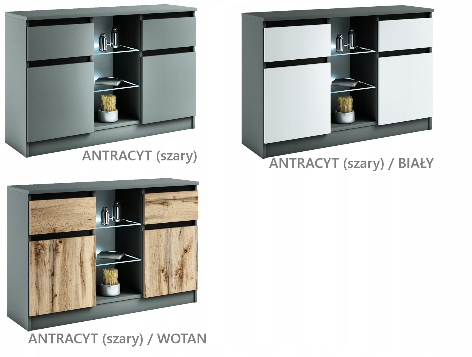 020020 LED2d2s Комод + світлодіодне освітлення - БІЛИЙ / ГЛЯНЦЕ # КОЛЬОРИ