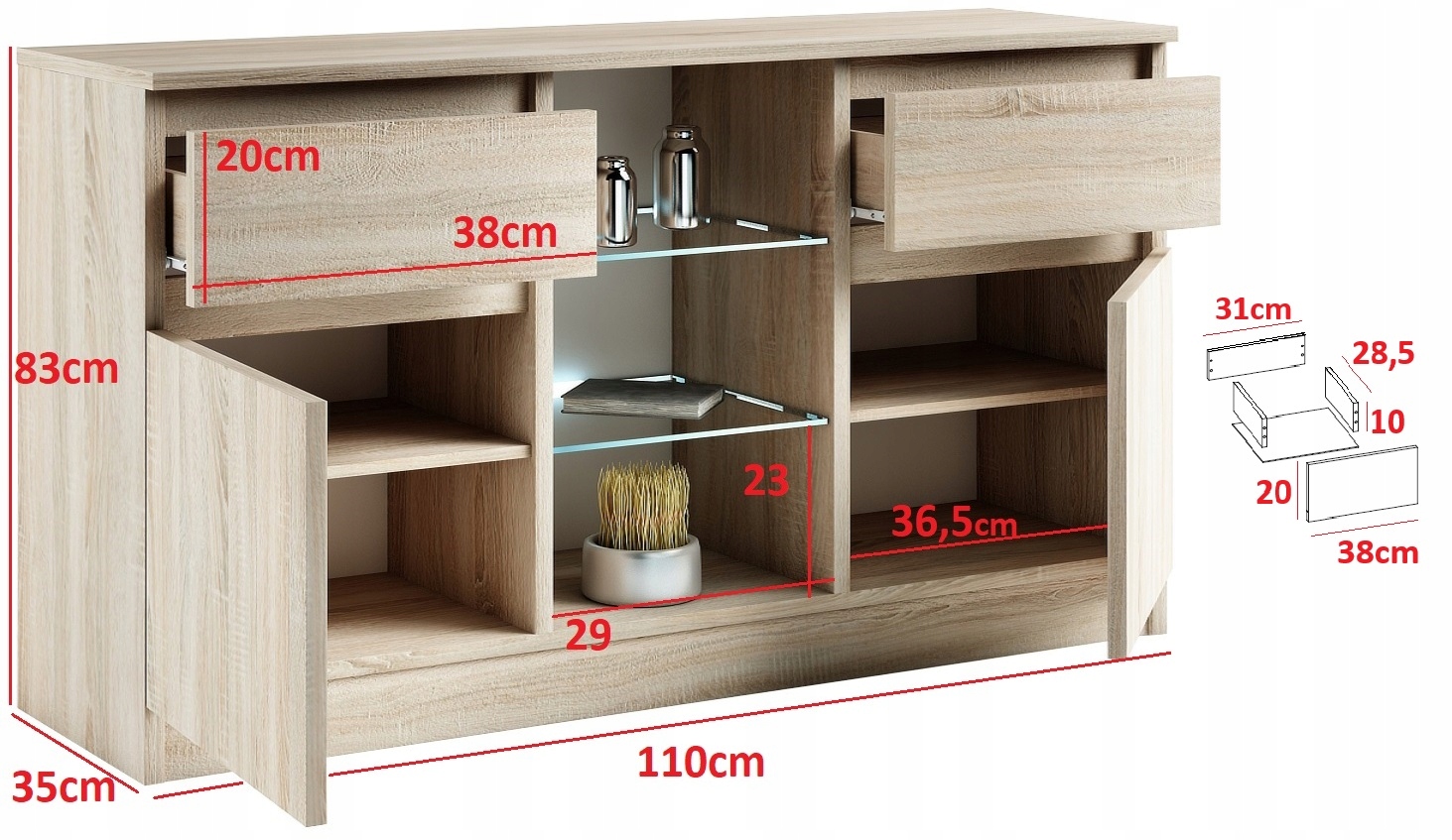 020022 LED2d2s Комод + світлодіодне освітлення - SONOMA / БІЛИЙ # КОЛЬОРИ