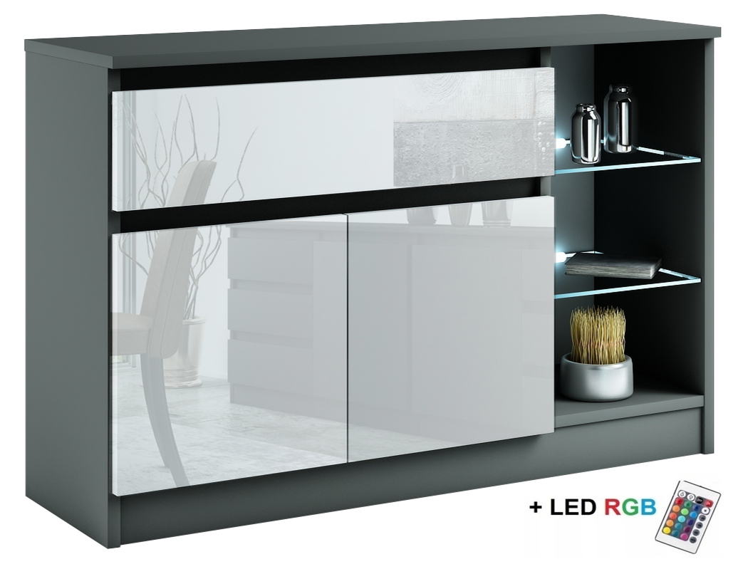 021106 LED2d1s Комод + світлодіодне освітлення - сірий АНТРАЦИТ / ГЛЯНЦЕ # КОЛЬОРИ