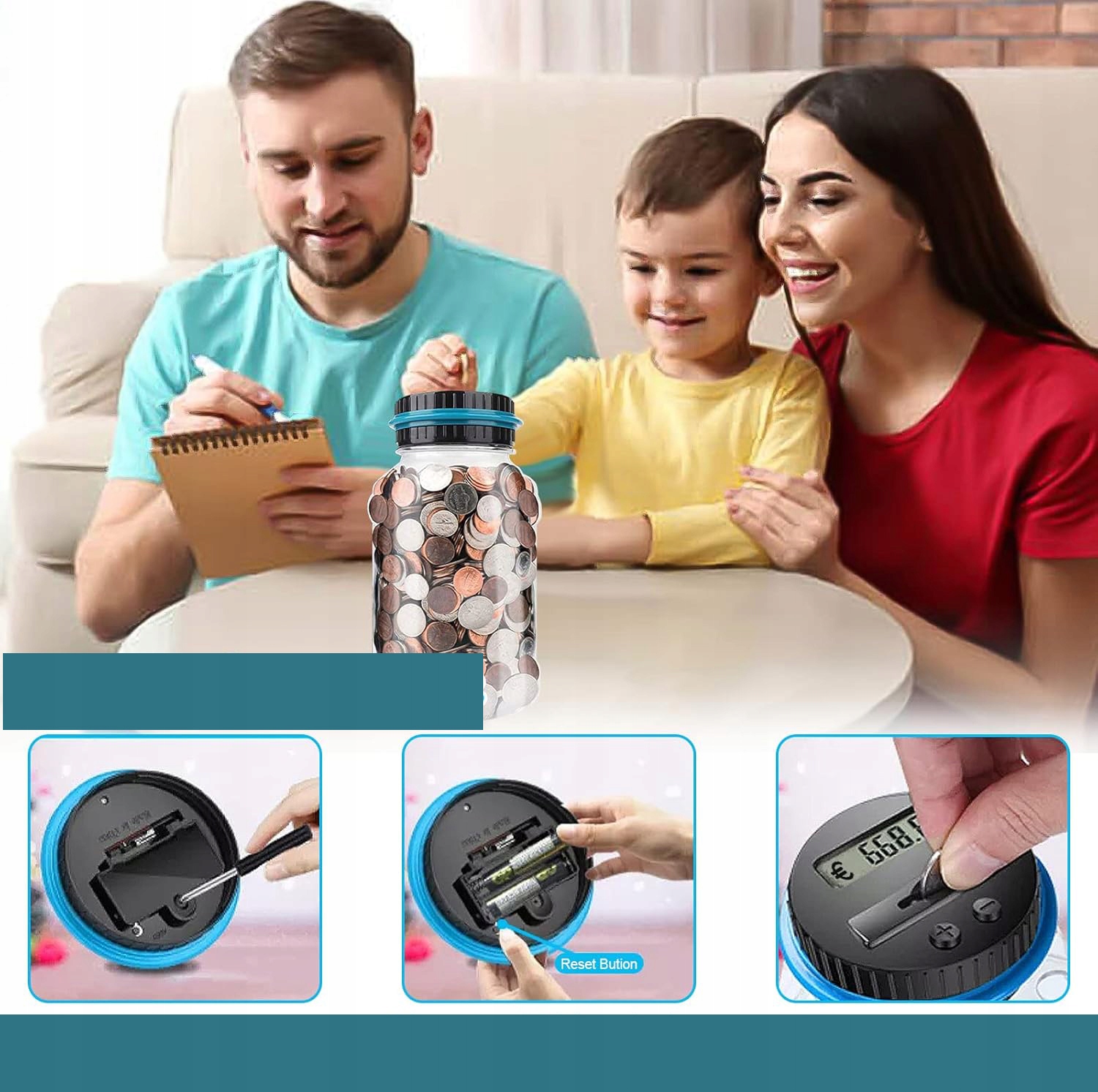 💰💰ekran LCD HD: дитячий свинячий банк приймає всі монети євро, і щоразу, коли ви проводите монету через монету через загальний обсяг мобільних пристроїв, що проводяться на загальний обсяг.