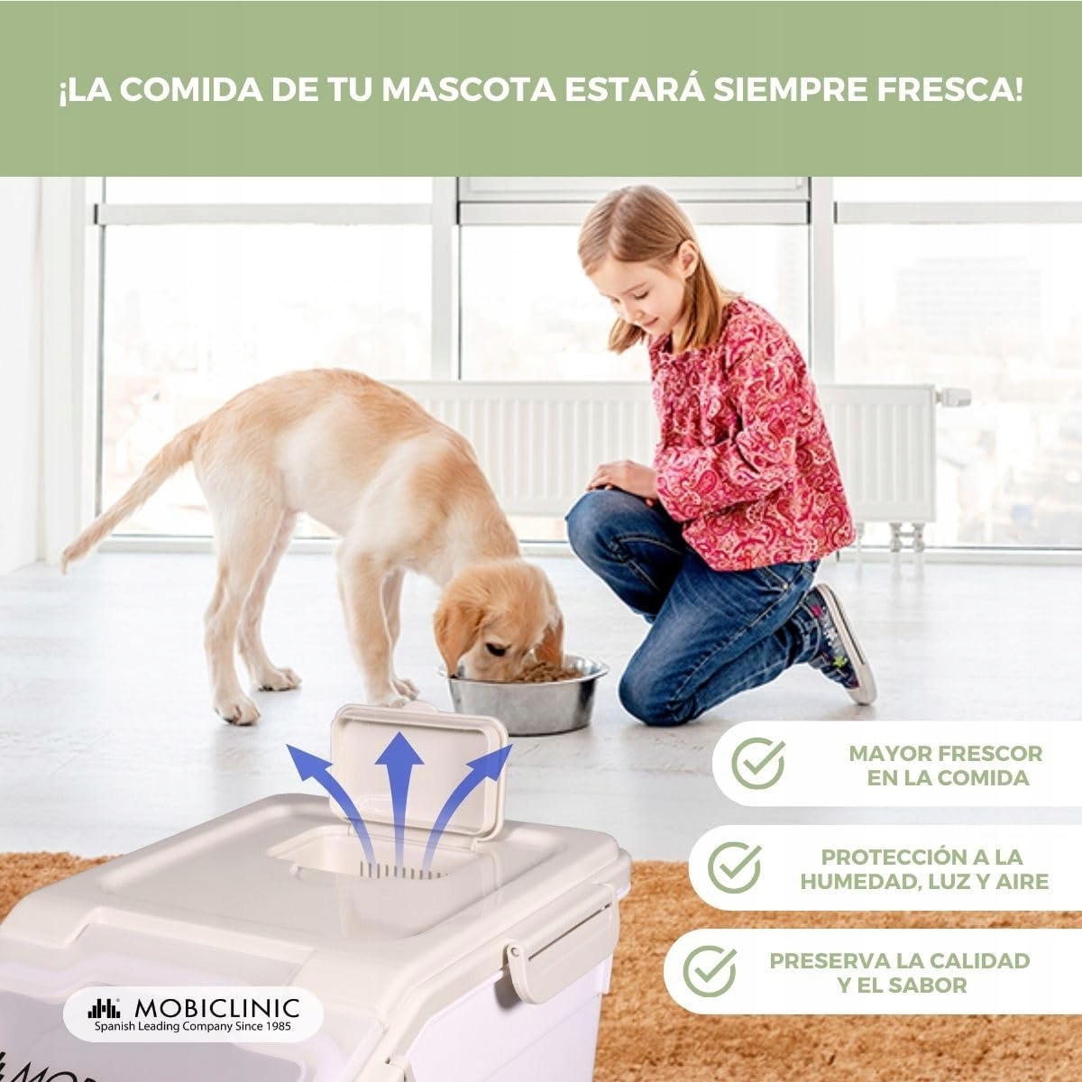 ? Практична організація та простий доступ: Feedpet спрощує організацію місця для зберігання, дозволяє легко отримати доступ до їжі для тварин і запобігає вкладенню руки в сумку з кармою. Він має оптимальну потужність 8 кілограмів (20 л). Крім того, він містить шпатель і заходи, запобігаючи відходам і легко розташовується, заощаджуючи місце та уникаючи низьких естетичних мішків