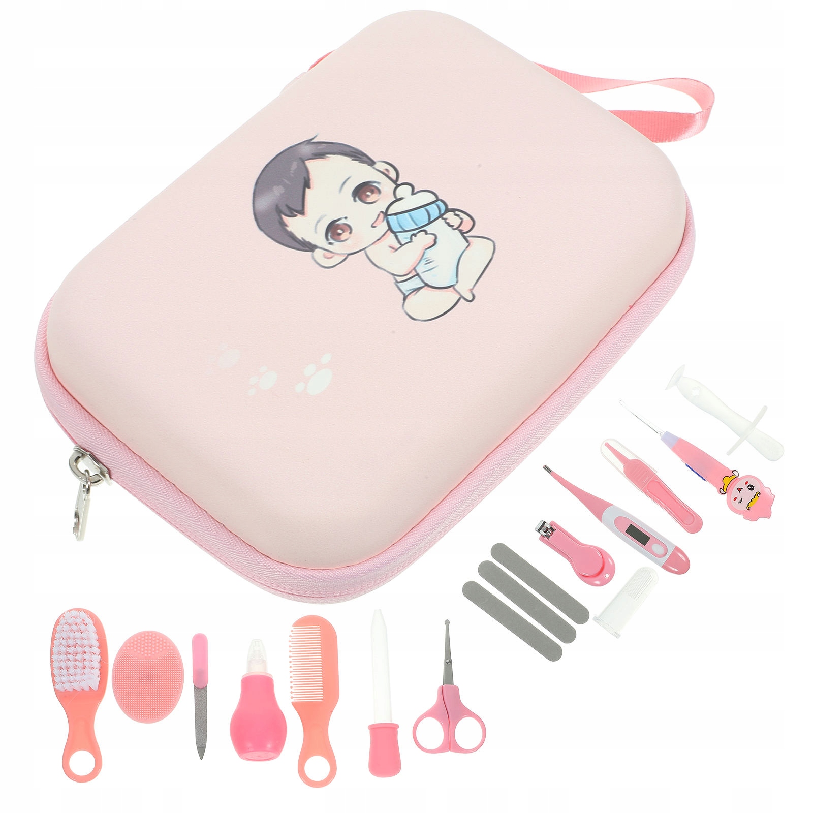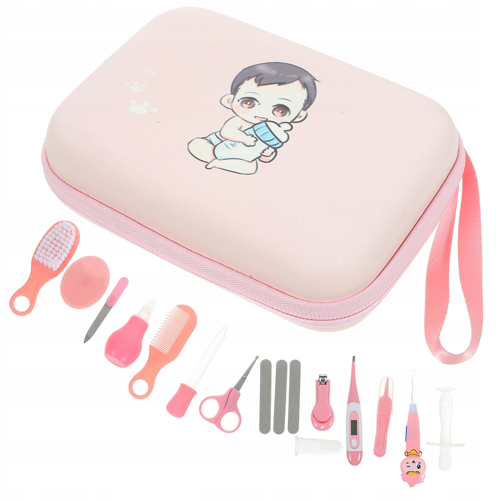 🌈 1 x кусачки для нігтів 1 x крапельниця 1 x назальний 1 x фреза 1 x пилка для нігтів 1 x щітка для нігтів 1 1 x гребінець для волосся 1 x вушна ложка 1 x затискач 1 x щітка для миття волосся 1 x соска 3 x листи лаку для нігтів 1 x термометр 1 x зберігання сумка