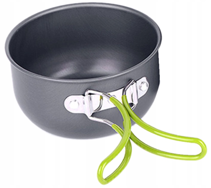 Сучасний туристичний посуд. Рекомендовано всім любителям активного відпочинку, альпіністам, любителям виживання та походів. Надзвичайно легкий і зручний, компактні розміри дозволяють упакувати його навіть у маленький рюкзак. Повністю виготовлений з легкого анодованого алюмінієвого сплаву, який піддався жорсткому процесу окислення (чорніння). Алюміній відмінно проводить тепло, приготувати їжу або чай в польових умовах на слабкому джерелі тепла не проблема. Гладка антипригарна поверхня, яку дуже легко підтримувати в чистоті. Кухонний посуд зі складними ручками, що не ошпарюють.