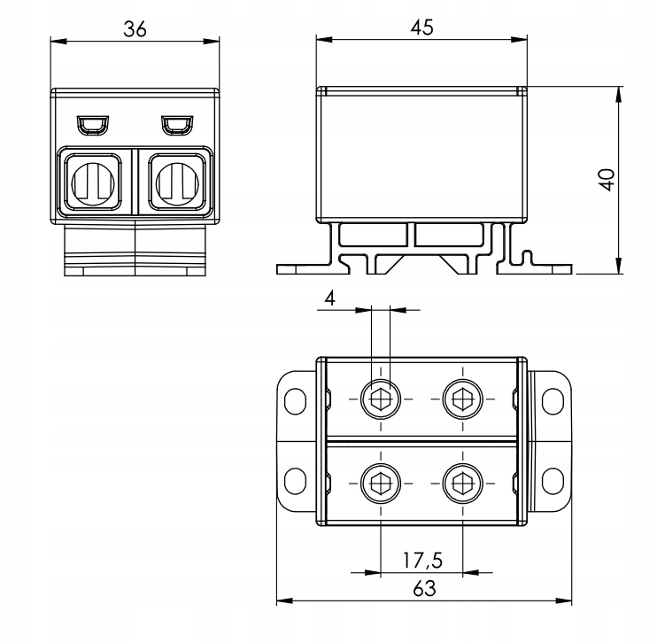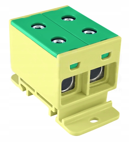 Універсальний гвинтовий роз'єм ZGX, біполярний з чотирма отворами, жовто-зеленим, для кабелів з поперечним перерізом від 1,5 до 35 мм². У компактному корпусі з невеликими розмірами, виготовленими з пластику без галогену PA6, класифікованим у найвищому стандарті горючості UL V-0 (тест на вертикальне куріння).