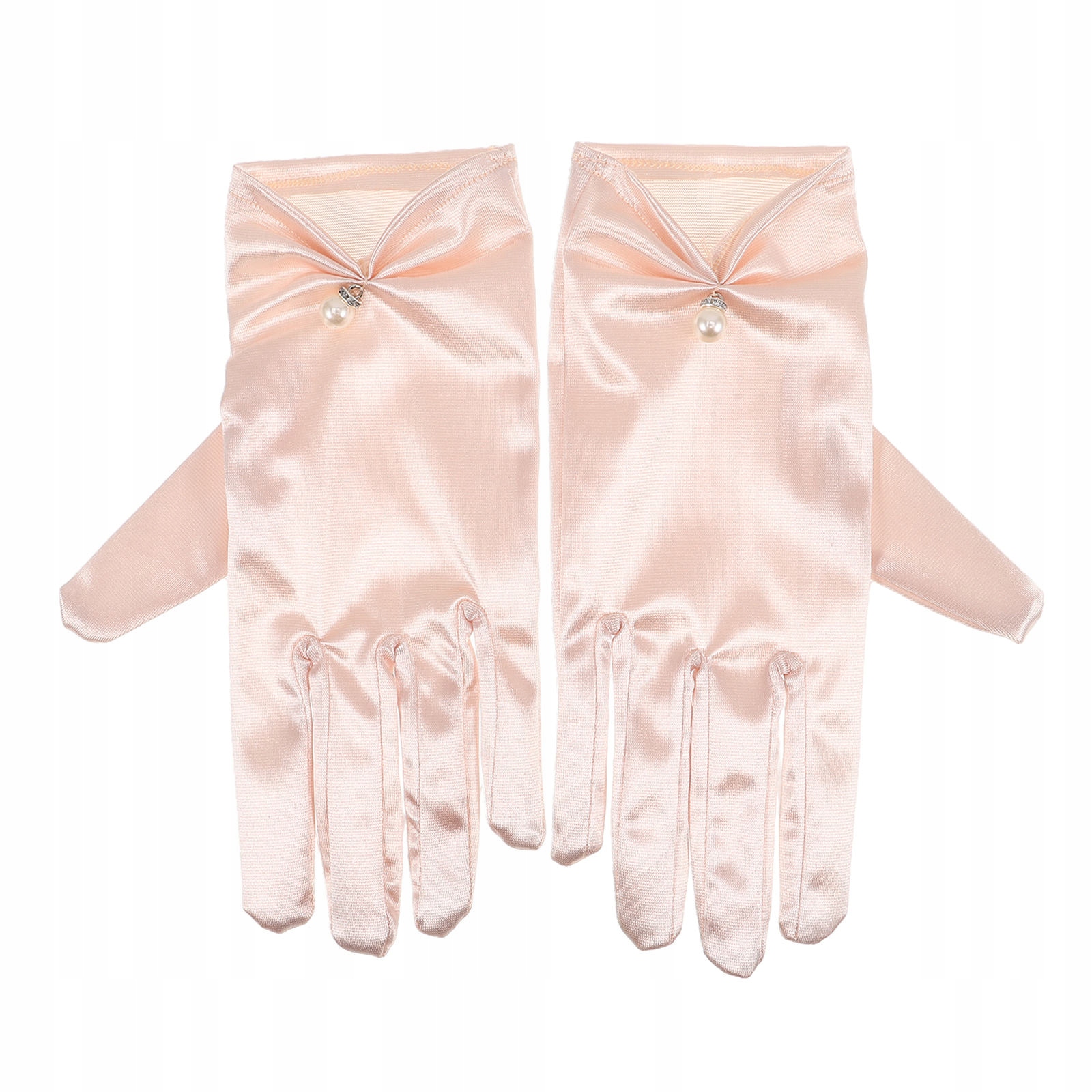 1 ПАРА ЕЛЕГАНТНИХ КОРОТКИХ ЖІНОЧИХ АТЛАСНИХ ВЕСІЛЬНИХ РУКАВИЦЬ, ПЕРЛАВНИХ, ДЛЯ НАВЕЧЕНИХ, ДЕКОРИРОВАНІ ГЛОВОМ