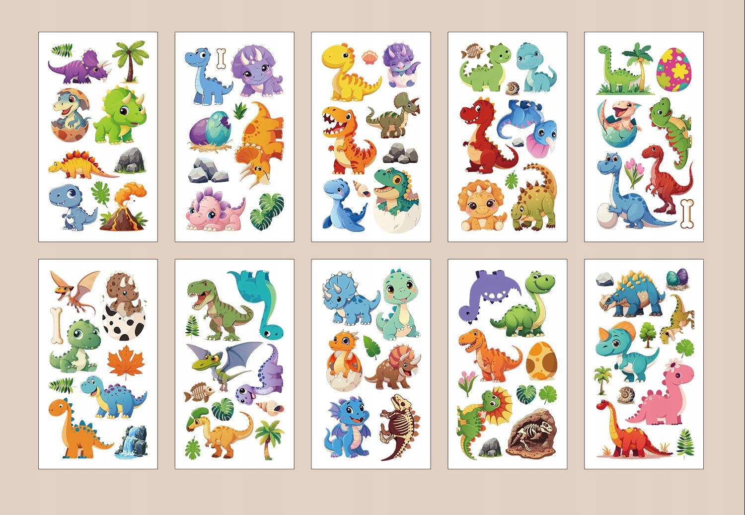 10 аркушів наклейок з татуюваннями динозаврів для дитячих подарунків