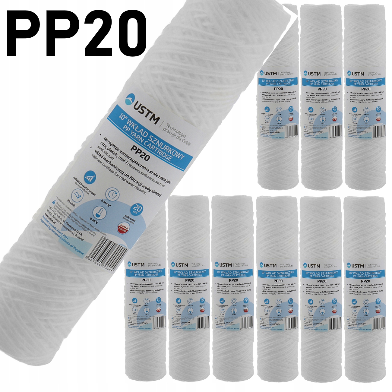 10 x ВСТАВКА ДЛЯ ФІЛЬТРУ ДЛЯ ВОДИ 10" UST-M 20 мікрон