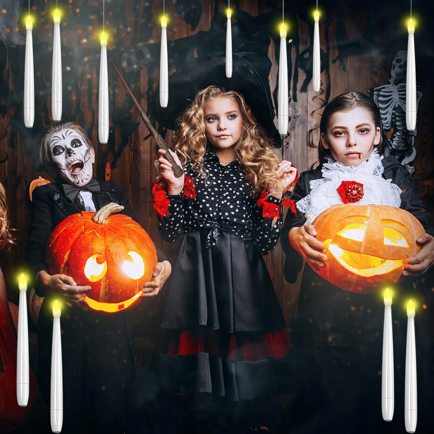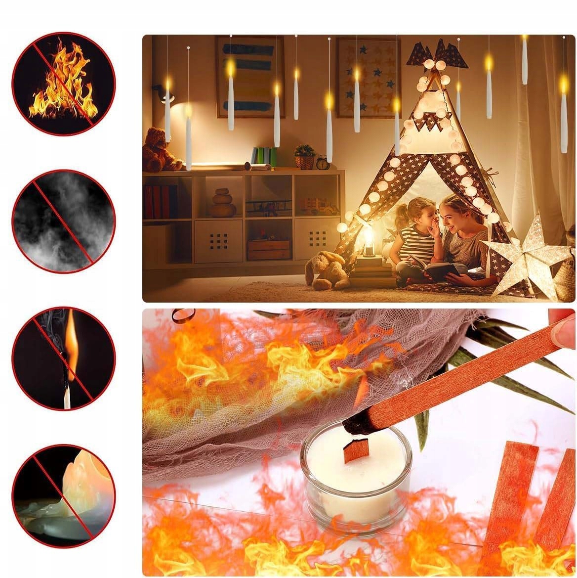 🎨🎨【Ідеальний подарунок】Ці реалістичні безполум’яні конічні свічки імітують м’яке світіння традиційних свічок, створюючи чарівну атмосферу. Помилуйтеся захоплюючими пейзажами або практикуйте магію, як чарівник, який махає чарівною паличкою. Плаваючі конічні свічки з паличками ідеально підходять для Хеллоуїна, днів народжень, весіль, камінної полиці та святкових прикрас.
