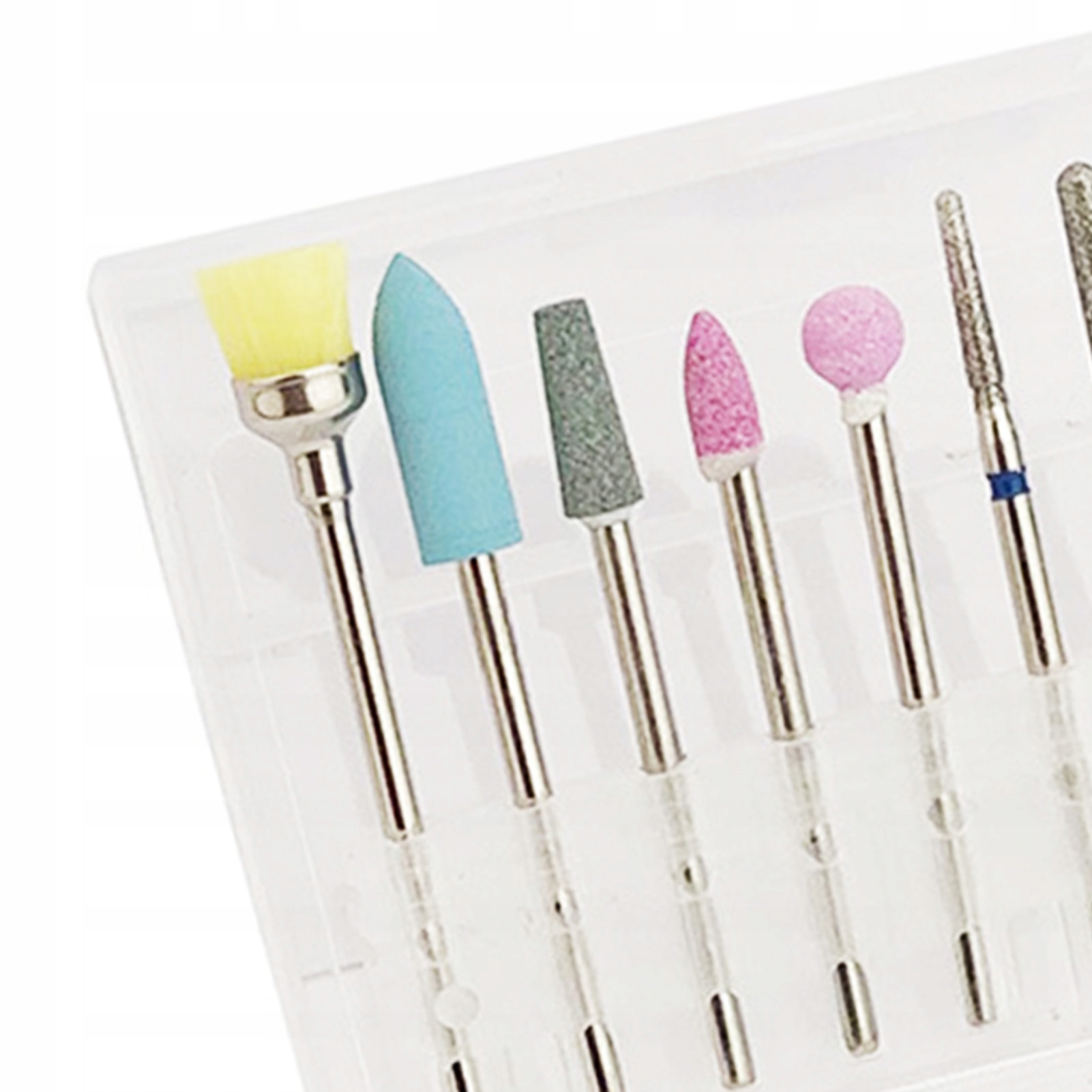 3, набір дрилів: 10 штук доступні свердла для нігтів, у різних стилях, підходящих для більшості електричних свердла для нігтів, важливих інструментів для досвідченого стиліста для нігтів та новачків. Зберігання, просте в перенесенні, ідеально підходить для домашнього використання та професійного шоу для нігтів.
