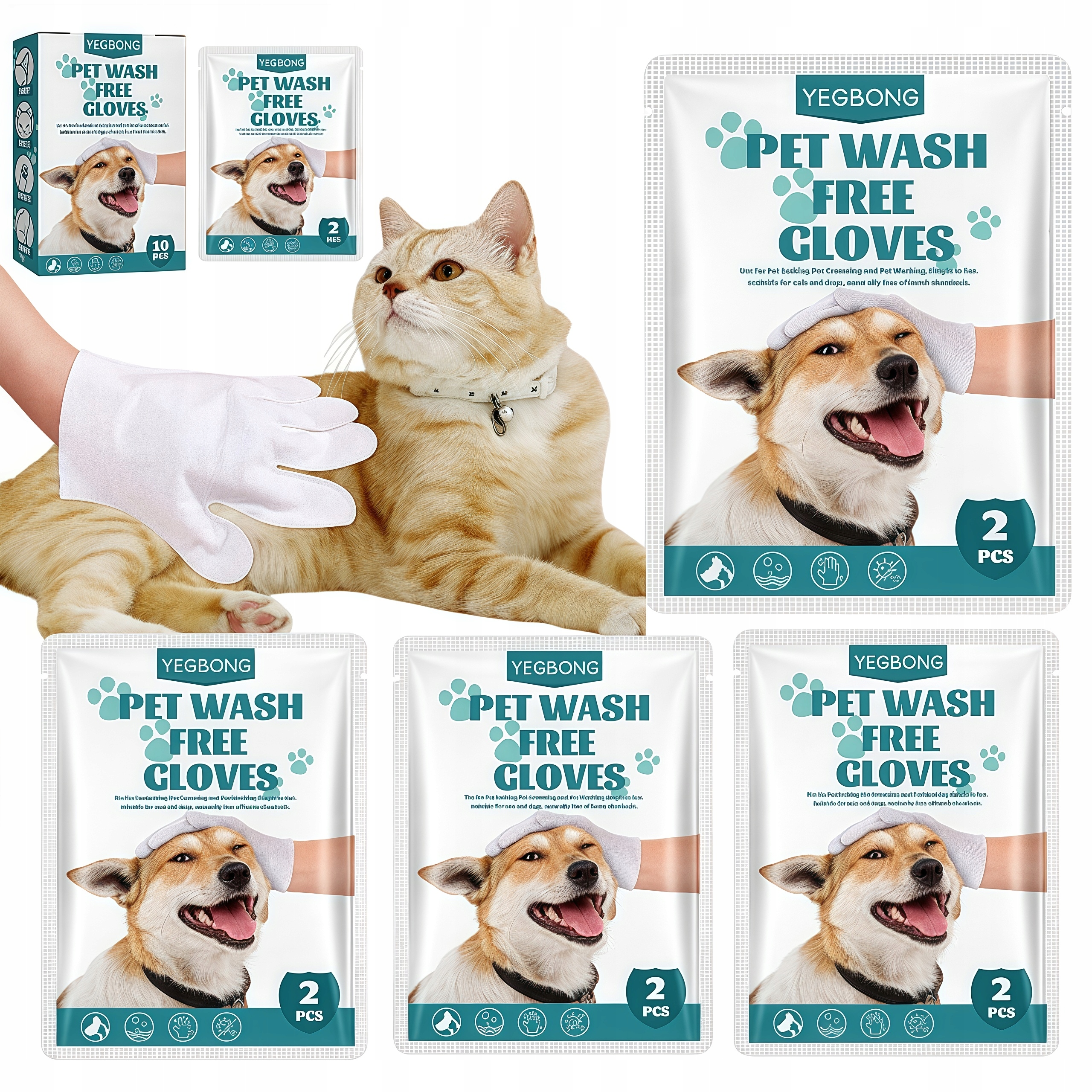 ⏺⏺Список упаковок⏺⏺1 x Коробка Pet SPA Clean Gloves (Одна коробка містить 5 упаковок, по 2 штуки в кожній упаковці.)