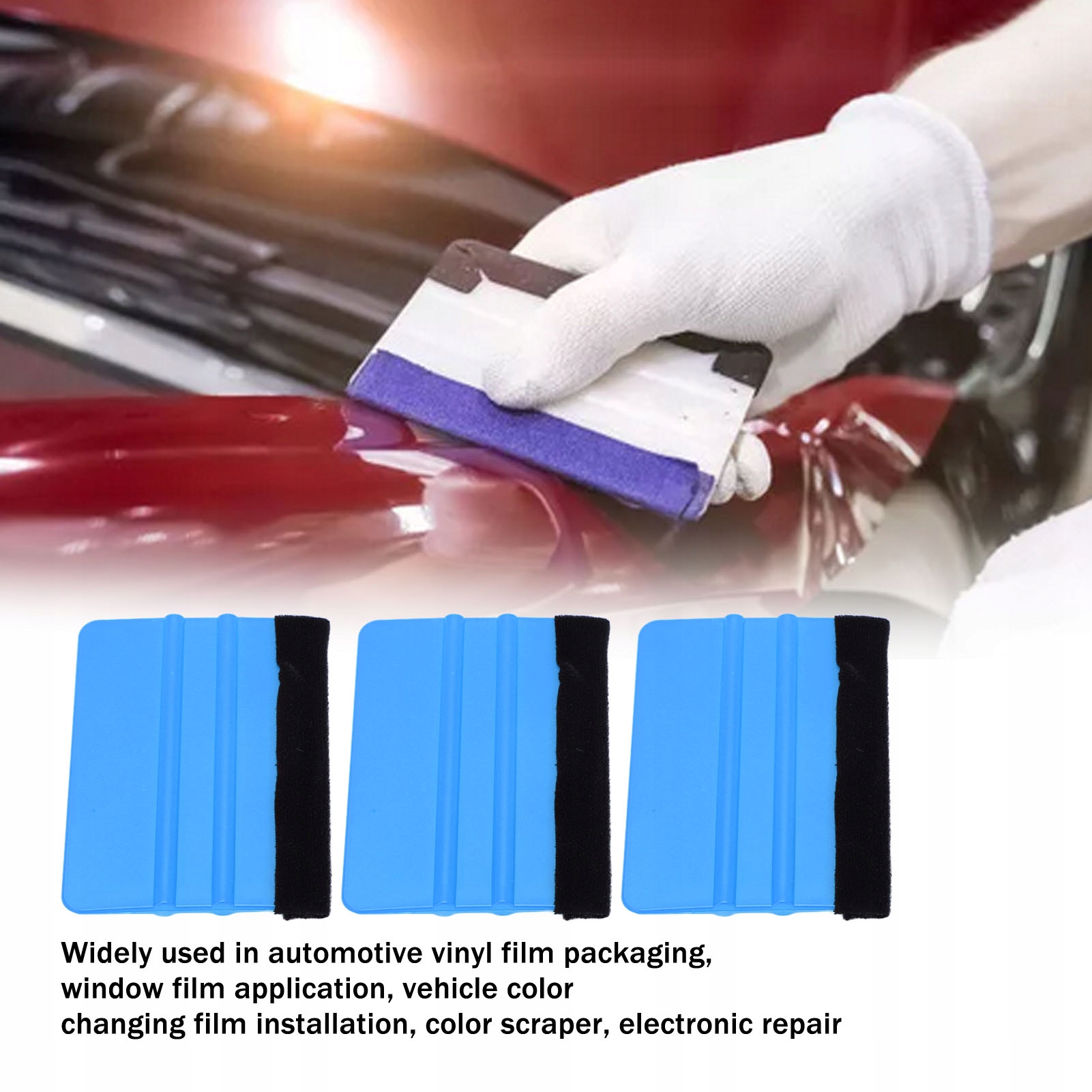 4. Застосування: зазвичай використовується в автомобільній упаковці вінілової фольги, застосування для віконної плівки, встановлення плівки, що змінює колір транспортного засобу, кольорового скрепер, електронний ремонт.