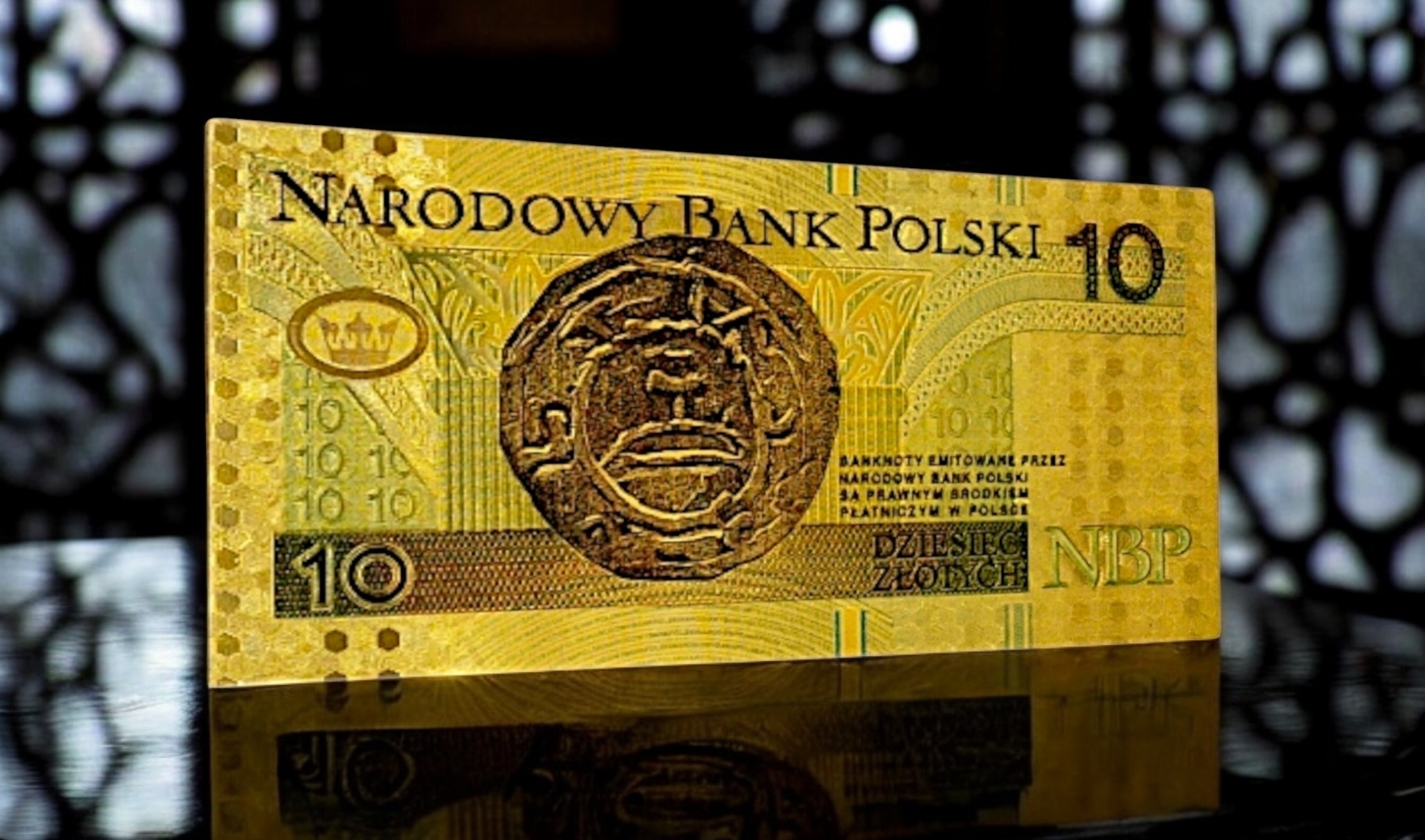 Прекрасна копія польської обігової банкноти того ж номіналу, виготовлена з ПВХ і покрита золотою фольгою.