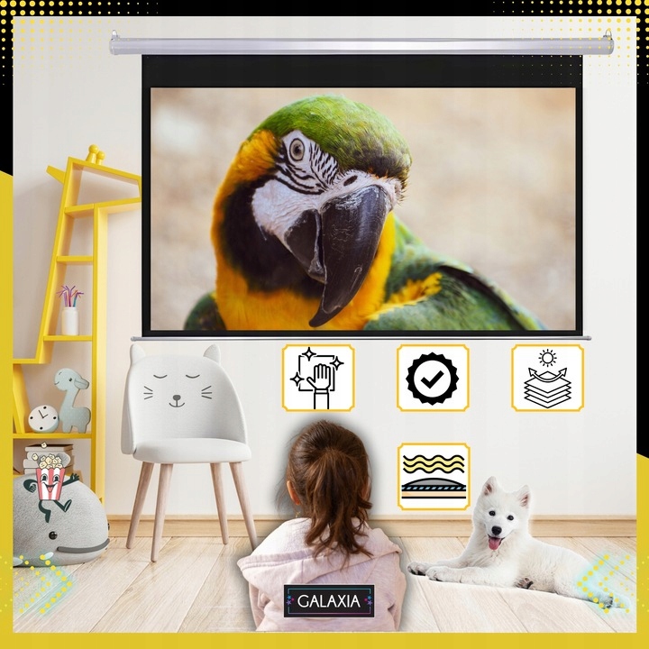 рухайтеся у світ емоцій кіно, не виходячи з дому! Екран на 100 дюймів та екран 16: 9 дозволять вам насолоджуватися фільмами, серіями та іграми на великому екрані в якості HD. Це ідеальний вибір для кожної кінотеатр та любителя сімейних екранізмів.