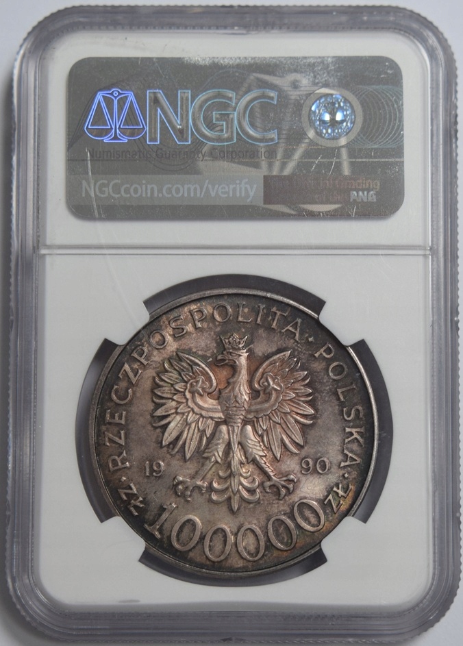 100 000 злотих SOLIDARITY 1990 TYPE A NGC MS66