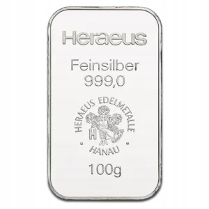 Злиток срібла 999 проби вагою 100 г виробництва одного з відомих виробників асоціації LBMA. Характеризується високою ліквідністю. Весь процес виробництва контролюється LBMA.