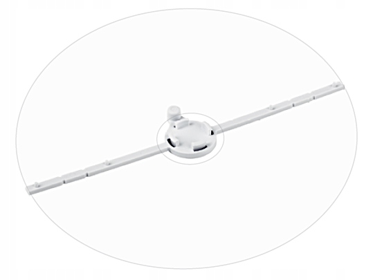 Перший - це поліамідний сполучний елемент - належним чином профільований направляючий з знімками, які ми вирізали до необхідної довжини діаметра вентилятора, і на якому другий елемент слід застосовувати відповідно до прикріплених інструкцій.